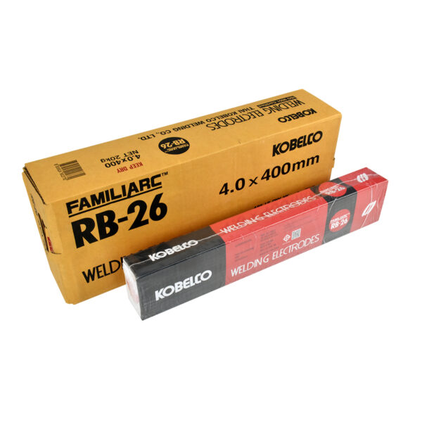ลวดเชื่อมโกเบ KOBE RB-26 ลวดเชื่อมเหล็กเหนียว เหมาะสำหรับใช้ในงานเชื่อมและโครงสร้างเหล็กเหนียวแผ่นบาง เช่น งานสร้างเรือ รถยนต์ หรือรถไฟ เพราะการซึมลึกที่ไม่สูงมากนัก ลวดเชื่อม RB-26 ให้การอาร์คที่นุ่ม เป็นสินค้าคุณภาพสูงจากญี่ปุ่น ผ่านการทดสอบจากมาตรฐานสากลทั่วโลก โดยจะเป็นลวดเชื่อมหุ้มฟลักซ์ชนิดไตตาเนียสูงสามารถเชื่อมได้ทั้งแบบท่าตั้งขึ้นและลากลง สามารถเรียกอีกชื่อนึงได้ว่า ลวดเชื่อมแดง ลวดเชื่อมโกเบแดง ขนาดลวดเชื่อมที่ช่างนิยมใช้จะเป็นขนาด 2.6, 3.2, และ 4.0 มิลลิเมตร
